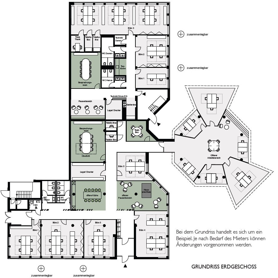 - Teeküchen, Sanitäranlagen, ggf. Meetingräume